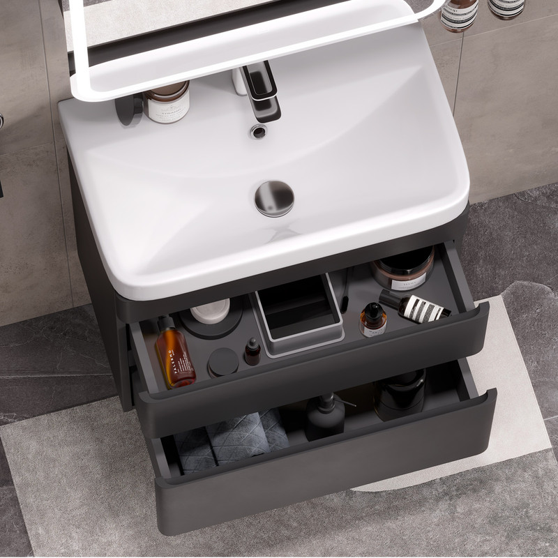 Тумба EQUIL ELTORO 60 подвесная, черная Soft touch с умывальником NICE 60