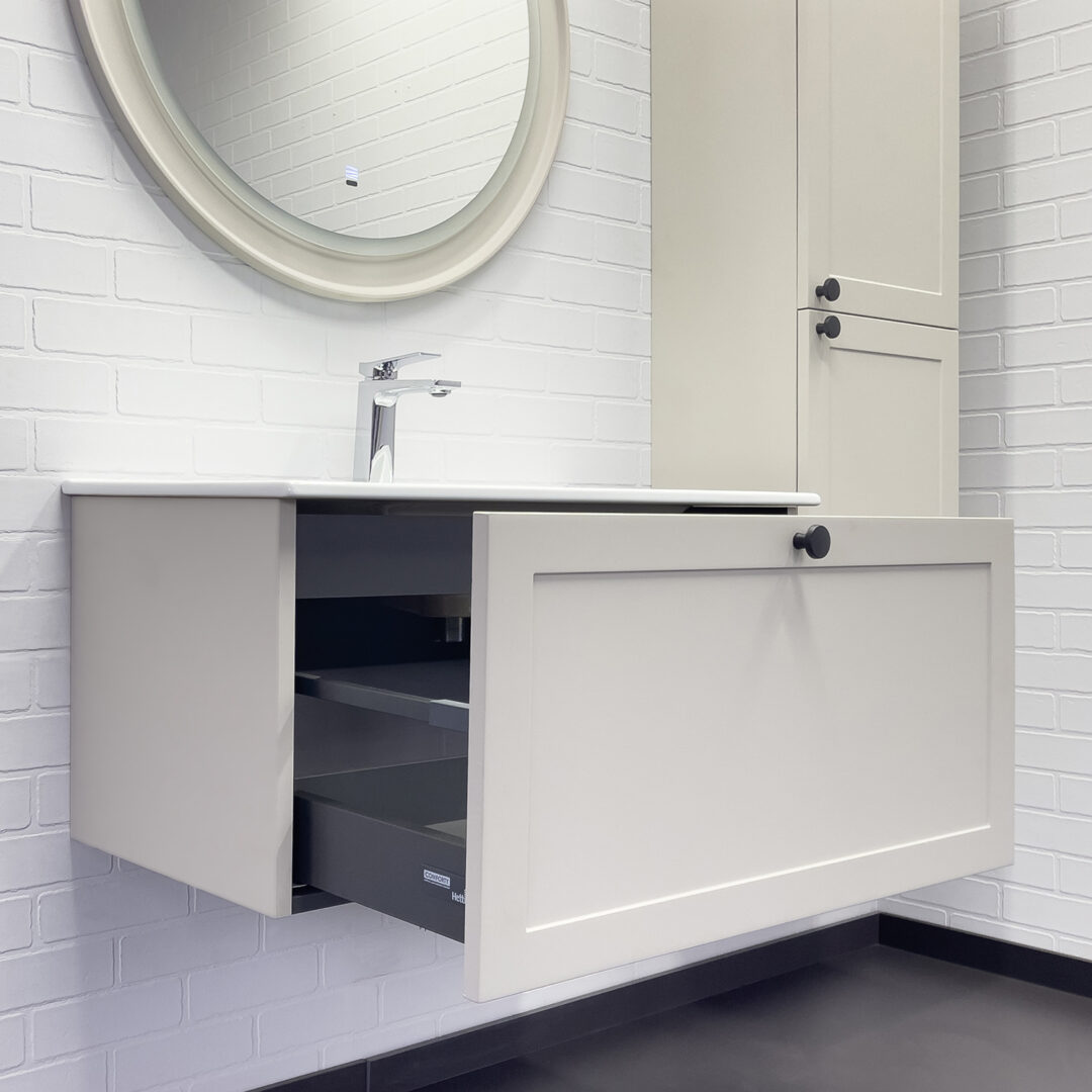 Тумба ЕРЕВАН 80 серый шёлк c умывальником COMFORTY 80E* — Ковчег