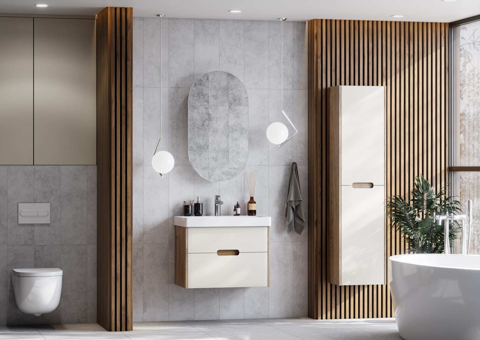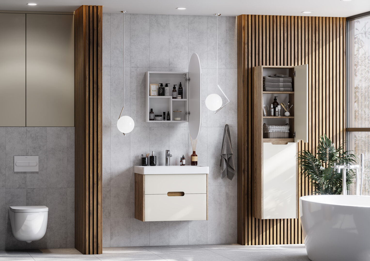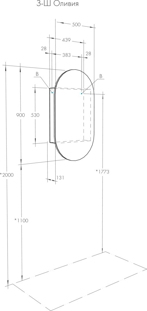 Pеркальныq шкаф необычной формы, внутренне пространство которого поделено на ассиметричные секции, позволяющие разместить косметические предметы различной высоты и объема. Фасад оснащен петлями с доводчиком для комфортного использования. Зеркальный шкаф комплектуется регулируемыми навесами.
