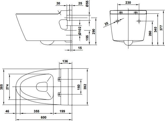 Унитаз ARQ подвесной (чаша, сиденье/крышка)(22172+51530) — Ковчег