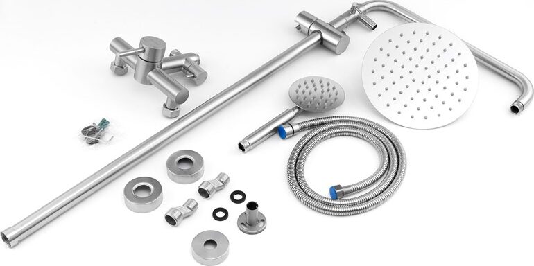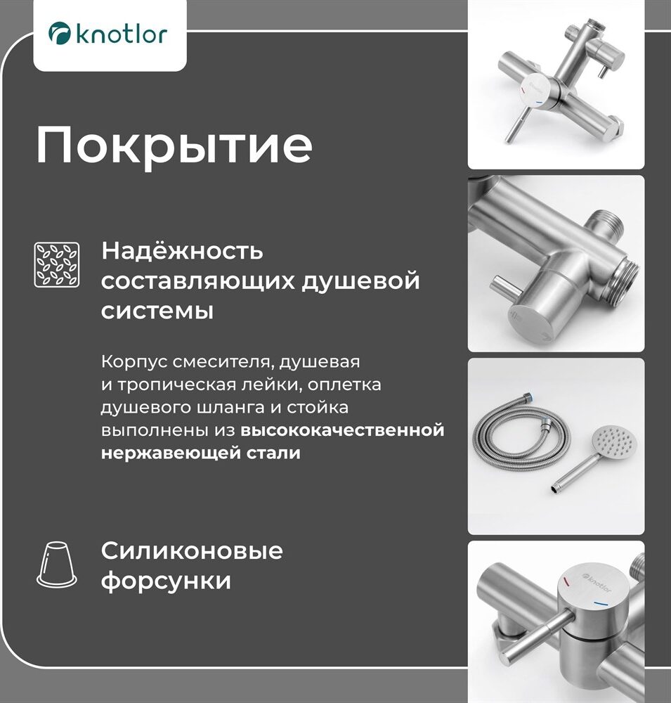 Душевая система STREAMLINE SS-06/1 с верхним душем и смесителем для душа, матовая сталь, KNOTLOR* — Ковчег
