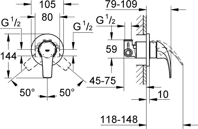 Комплект BAUCURVE для гигиенического душа скрытый монтаж, хром (124899) — Ковчег