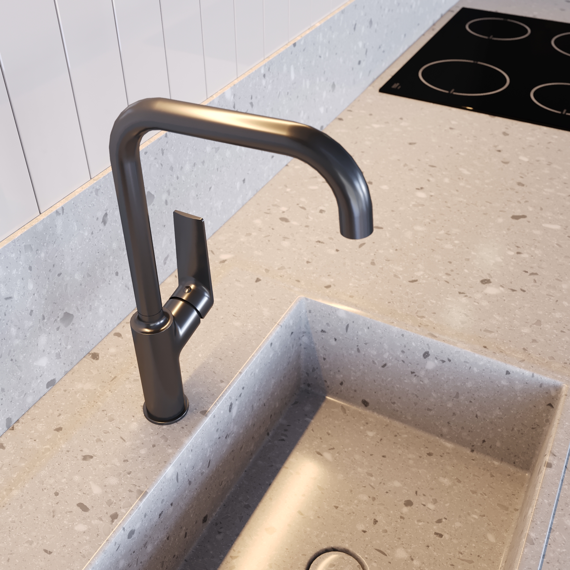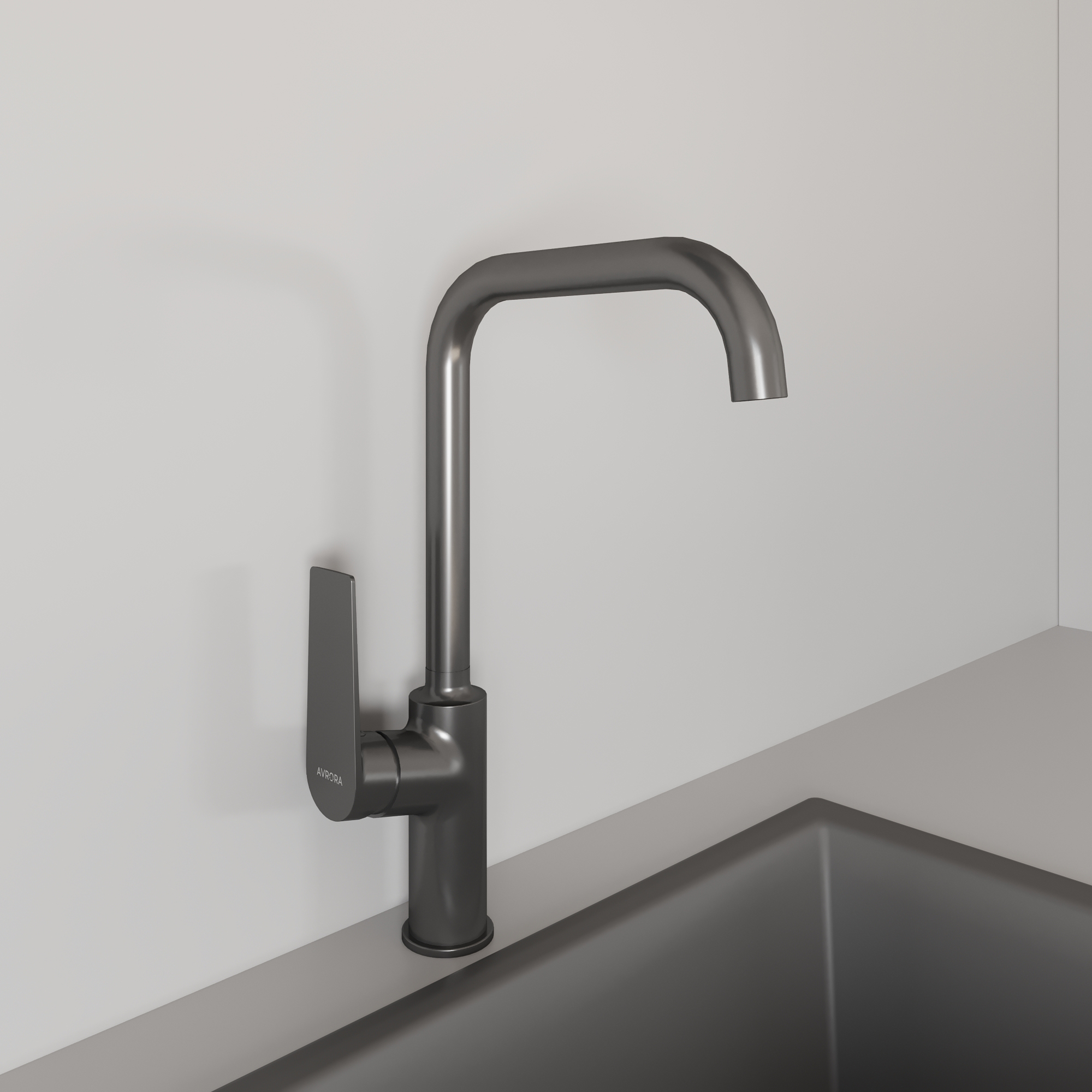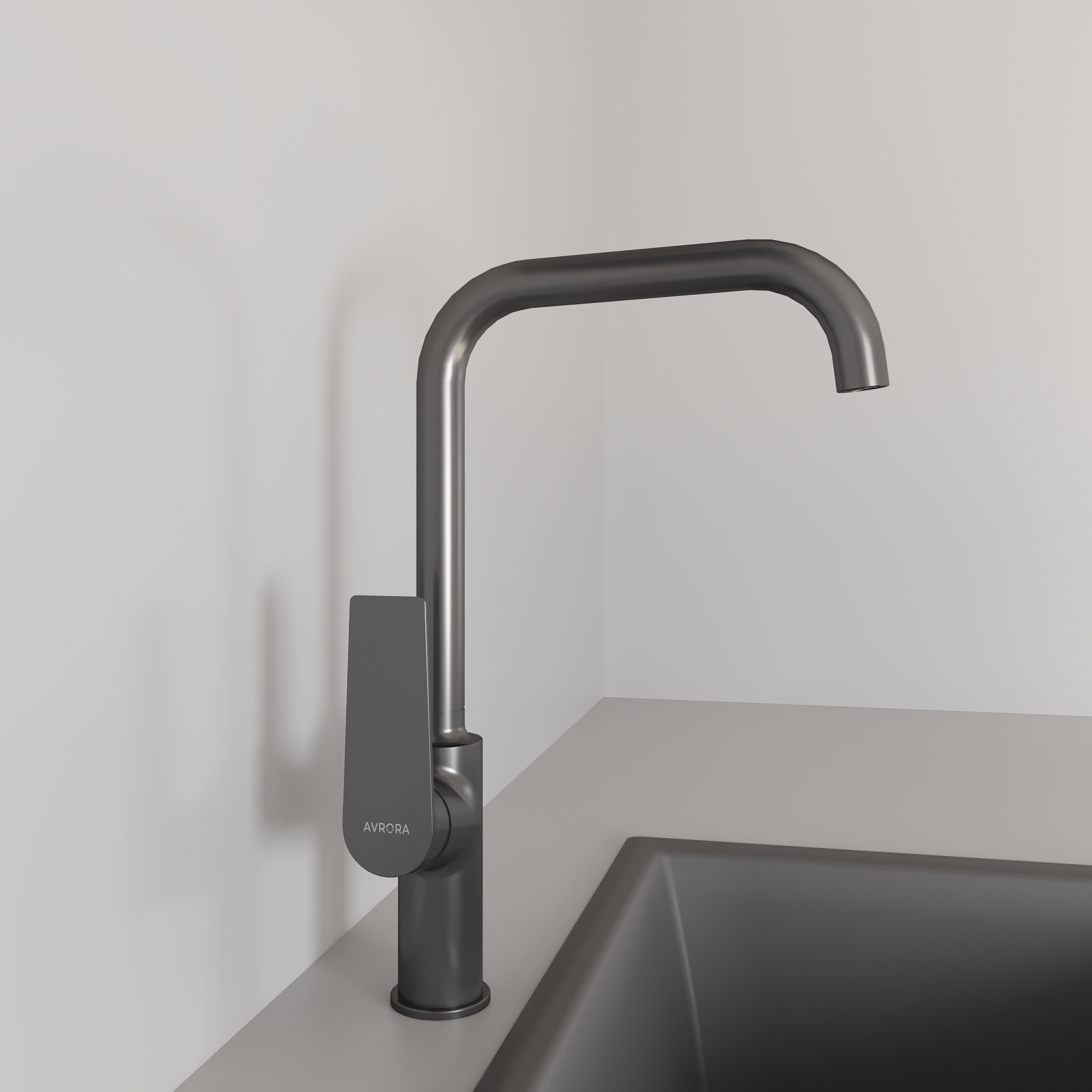 Смеситель GRAND для кухни с высоким поворотным изливом AV3821, графит AVRORA