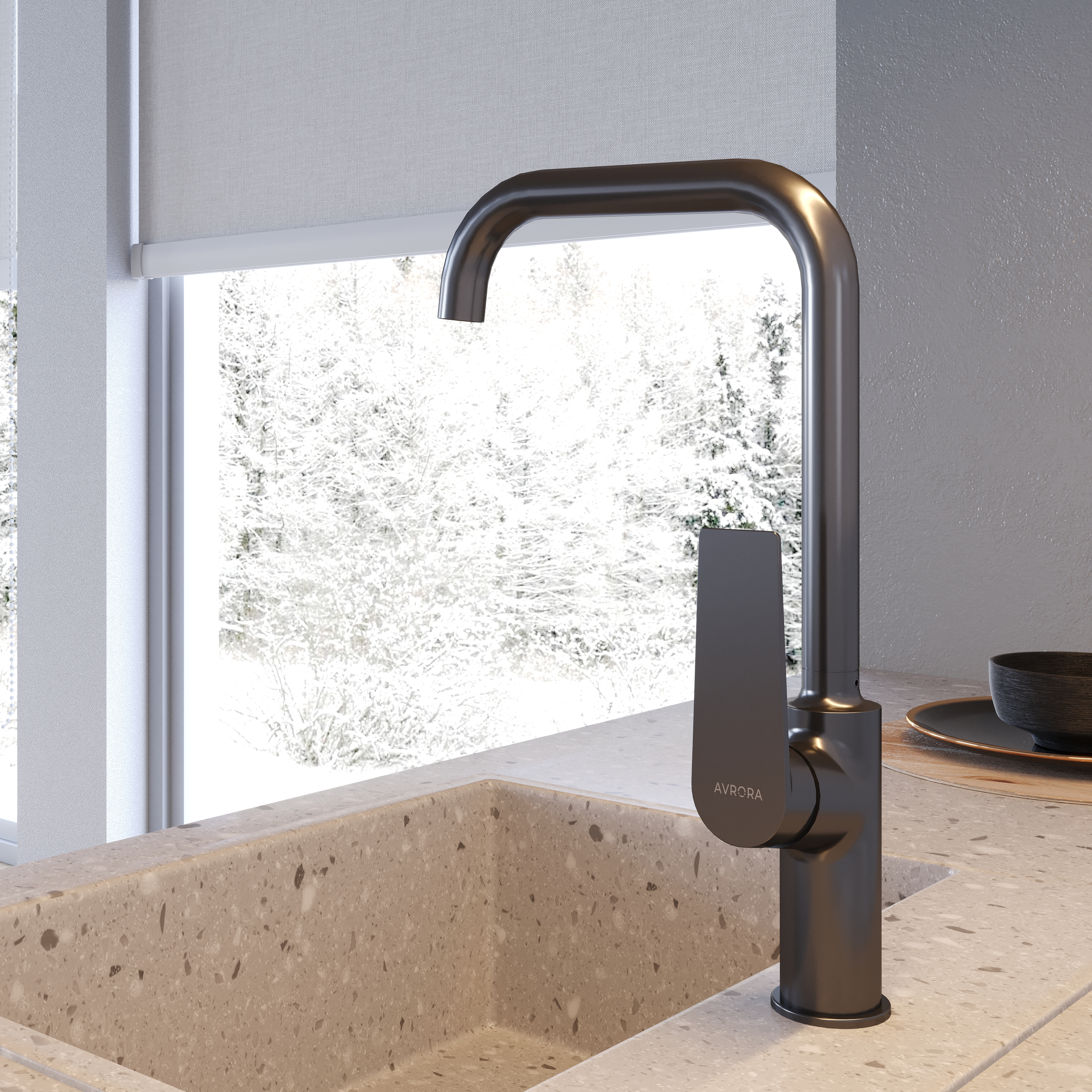 Смеситель GRAND для кухни с высоким поворотным изливом AV3821, графит AVRORA — Ковчег