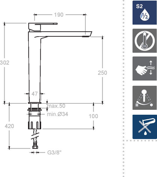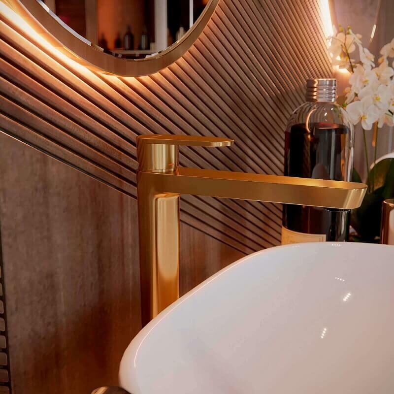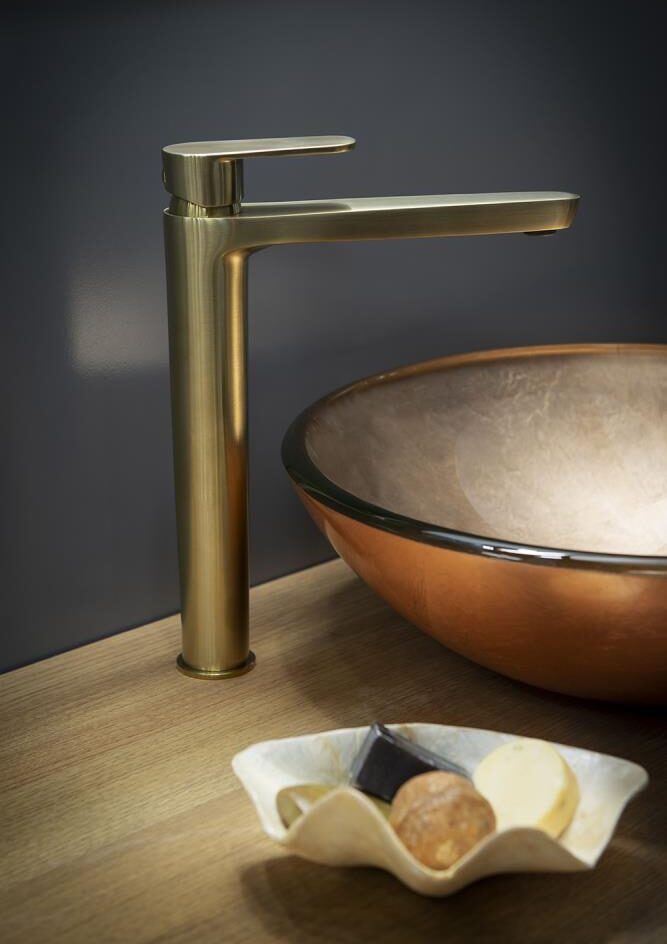 Смеситель для раковины высокий ALEXIA 3602OC однорычажный (золотой). Корпус смесителя изготовлен из хромированной латуни, оснащён керамическим картриджем. Двухступенчатая система открытия позволяет экономить воду. Эта модель имеет функцию TERMOSTOP BLOCK, которая обезопасит вас от случайных ожогов. Высота смесителя 302 мм. Высокие модели смесителей идеально подходят для накладных раковин. Дизайн этой модели прекрасно смотрится в любом интерьере.
