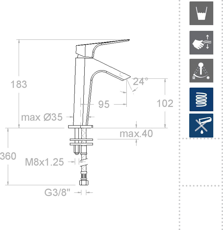 Смеситель для раковины URBAN CHIC 210101 однорычажный. За эту серию компания Ramon Soler получила награду на международной выставке DESIGN AWARD 2020. Корпус смесителя изготовлен из хромированной латуни, оснащён керамическим картриджем. Эта модель имеет функцию TERMOSTOP BLOCK, которая обезопасит вас от случайных ожогов. Высота смесителя 183 мм. Отличительная особенность этой модели - оригинальная система излива, напоминающая небольшой водопад. Уникальным образом устроен поток воды внутри смесителя: вода проходит через картридж, который контролирует температуру и напор, а затем через специальную спираль выводится на излив не под давлением, а стекая плавным потоком, подобно ручью.