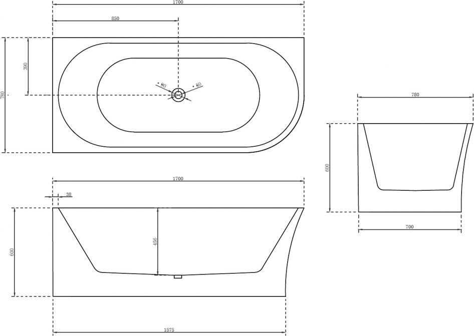 Ванна AB 9257L [170*78*60] пристенная — Ковчег