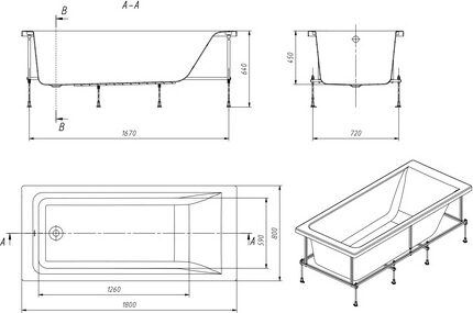 Ванна EASY [180*80] 248618000, каркас 25P028000* — Ковчег