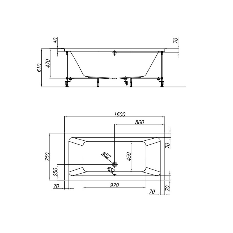 Ванна ELEKTRA [160*75] комплектация BASIS каркас*