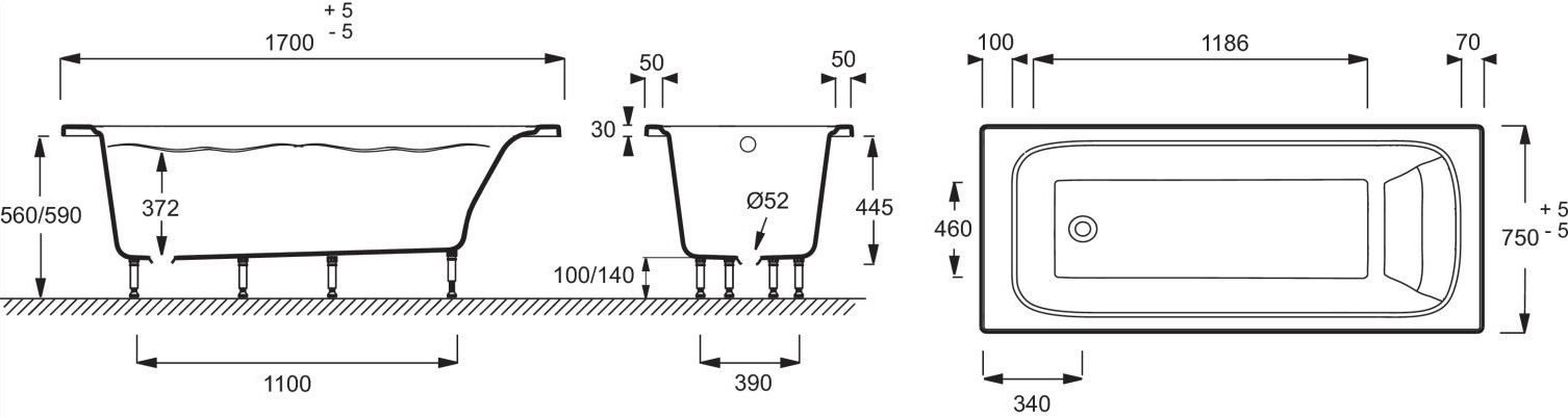 Ванна ELITE [170*75] E6D031RU-00* — Ковчег